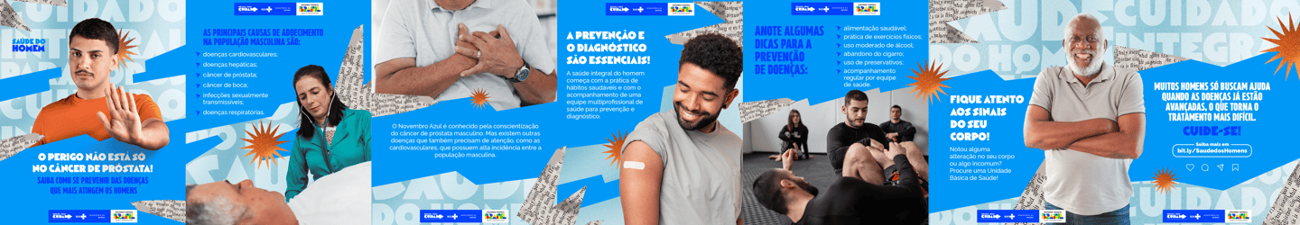 A identidade visual da campanha Novembro Azul foi desenvolvida para transmitir uma mensagem de conscientização e cuidado com a saúde masculina, combinando tipografias fortes e limpas que reforçam clareza e confiança.