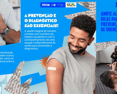 Nos cards e peças gráficas, foram utilizados recortes de jornal para representar a informação e adicionar interesse visual. Elementos em tons de azul, que remetem a papel recortado, trazem dinamismo e um aspecto artesanal, reforçado pela textura de papel aplicada ao fundo.